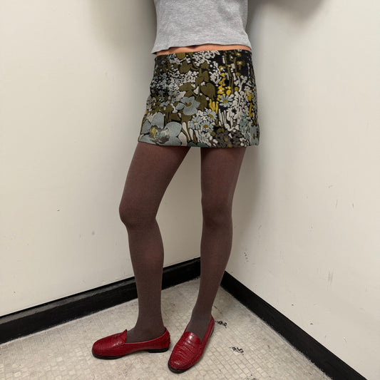Ava Mini Skirt in Yellow Jacquard with Pink Berries