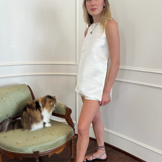 The Bitsy Tank in Floral Embroidery Peach Taffeta