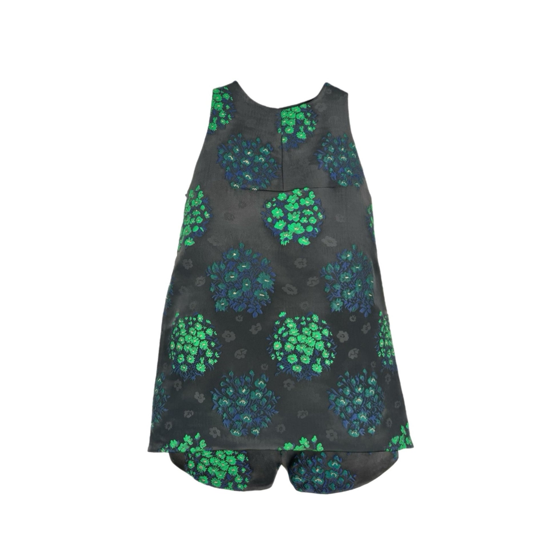 The Ashleigh Tunic set in light weight emerald bouquet satin jacquard is our best selling dress up or down outfit. The perfect tunic paired with our Ashleigh shorts, this set is something everybody needs in their closets.