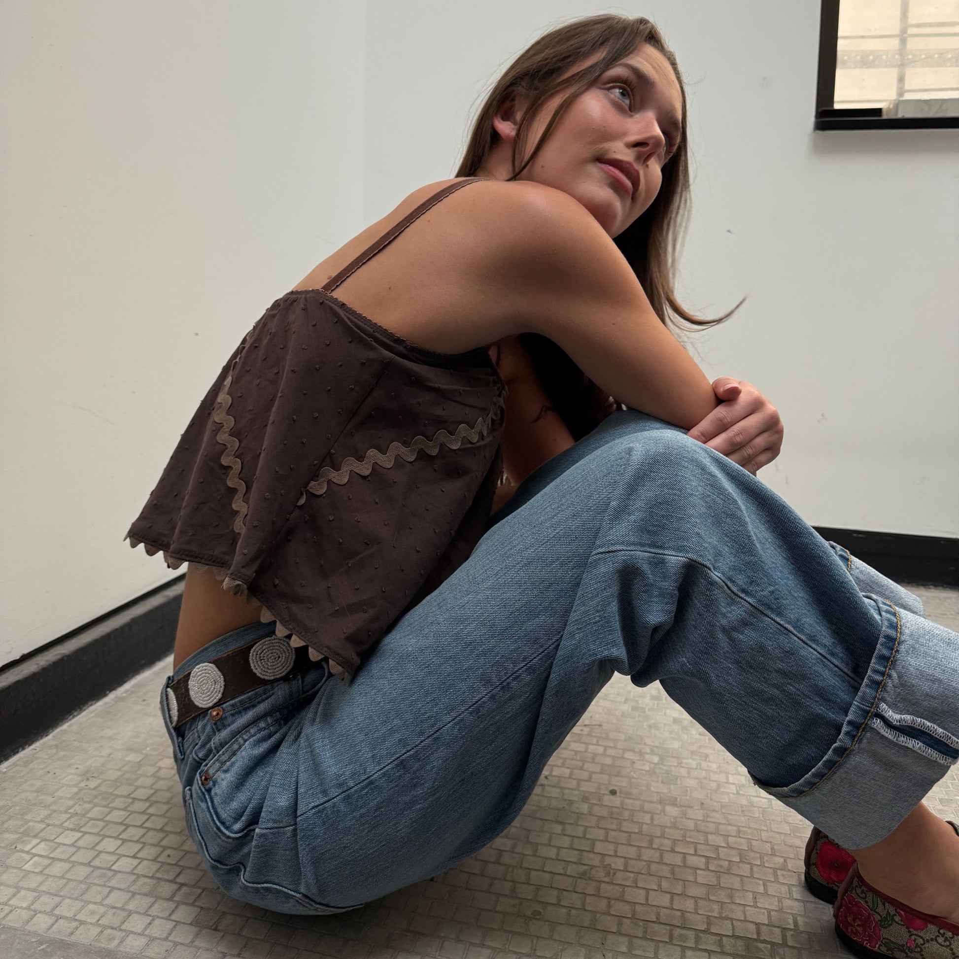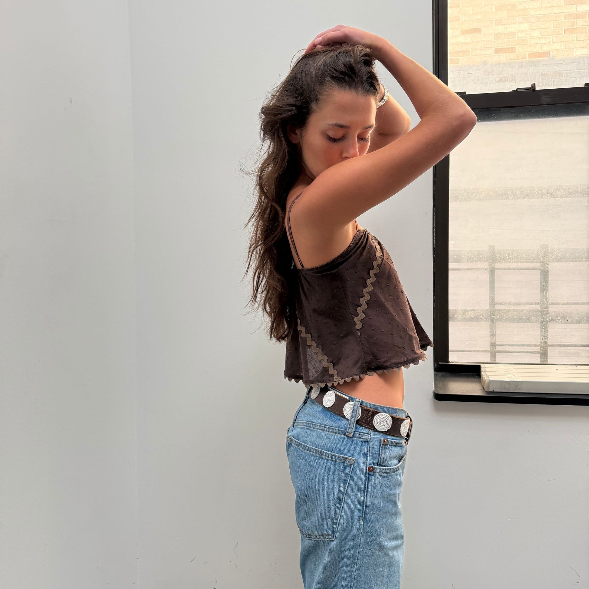 The Perfect Tank in Brown Swiss Dot Cotton With Ric Rack